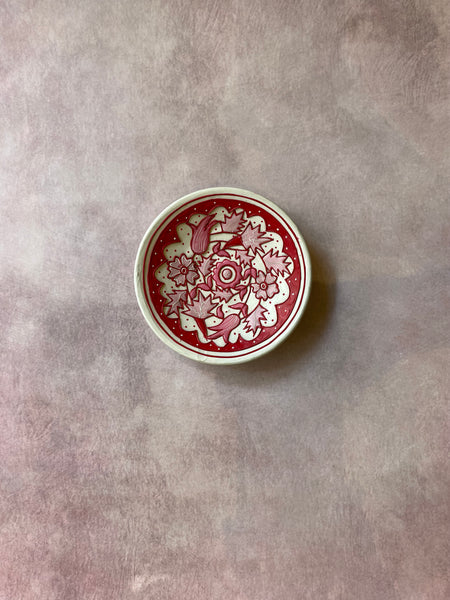 Inspired by the elegance of Dutch floral artistry and reimagined through the lens of Indian craftsmanship, this Red Delft Blossom Wall Plate is a part of the exclusive Scarlet Heirloom Series by Culture Aisle India. Hand-painted in deep red hues on premium ceramic, the intricate central bloom and surrounding foliage reflect a perfect blend of heritage and modern aesthetic. Ideal for wall décor, this plate comes ready to hang and brings warmth, artistry, and global charm to any interior. Whether styled solo or as part of a gallery wall, it is a timeless piece that celebrates cross-cultural creativity.